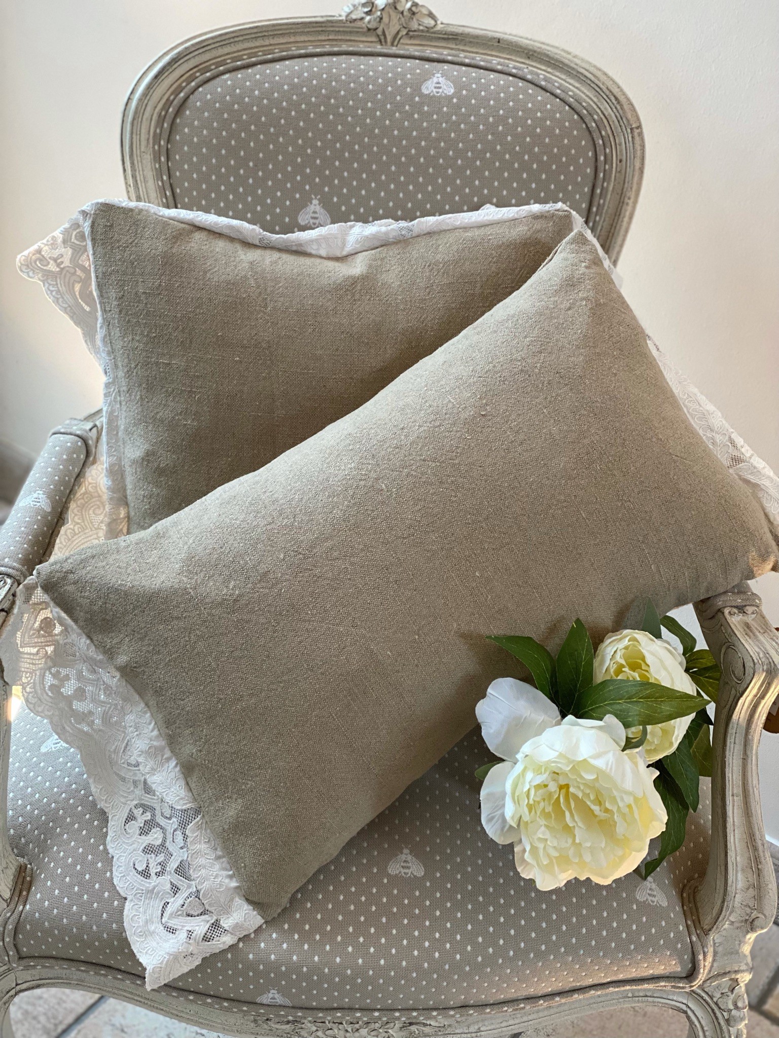Coussin rectangulaire avec dentelle